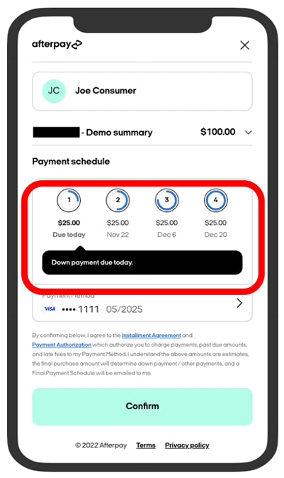 Afterpay is free when you pay on time.