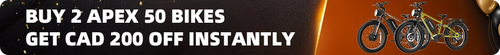 The upgraded 52V Apex 50 now features a top speed of 35 MPH (upgraded from 32 MPH), dual-shoulder suspension fork, and dual motors with a 3000W peak power. Its versatile AWD mode allows for rear-wheel drive, front-wheel drive, or dual-drive operation. Equipped with a larger headlight, it's perfect for off-road trails, steep climbs, and challenging terrains.